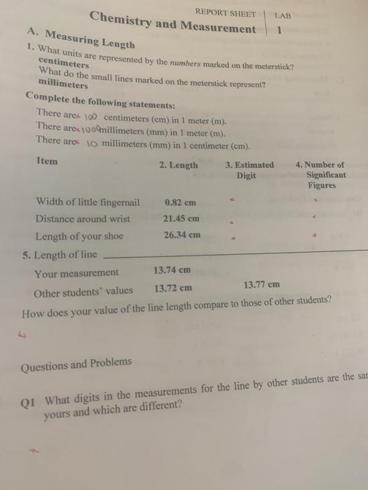 General Chemistry - Notes. Chemistry questions and answers Date Name Team REPORT SHEET Chemistry and Measurement LAB 1 A. Answers Report Lab Measurements Chemistry.